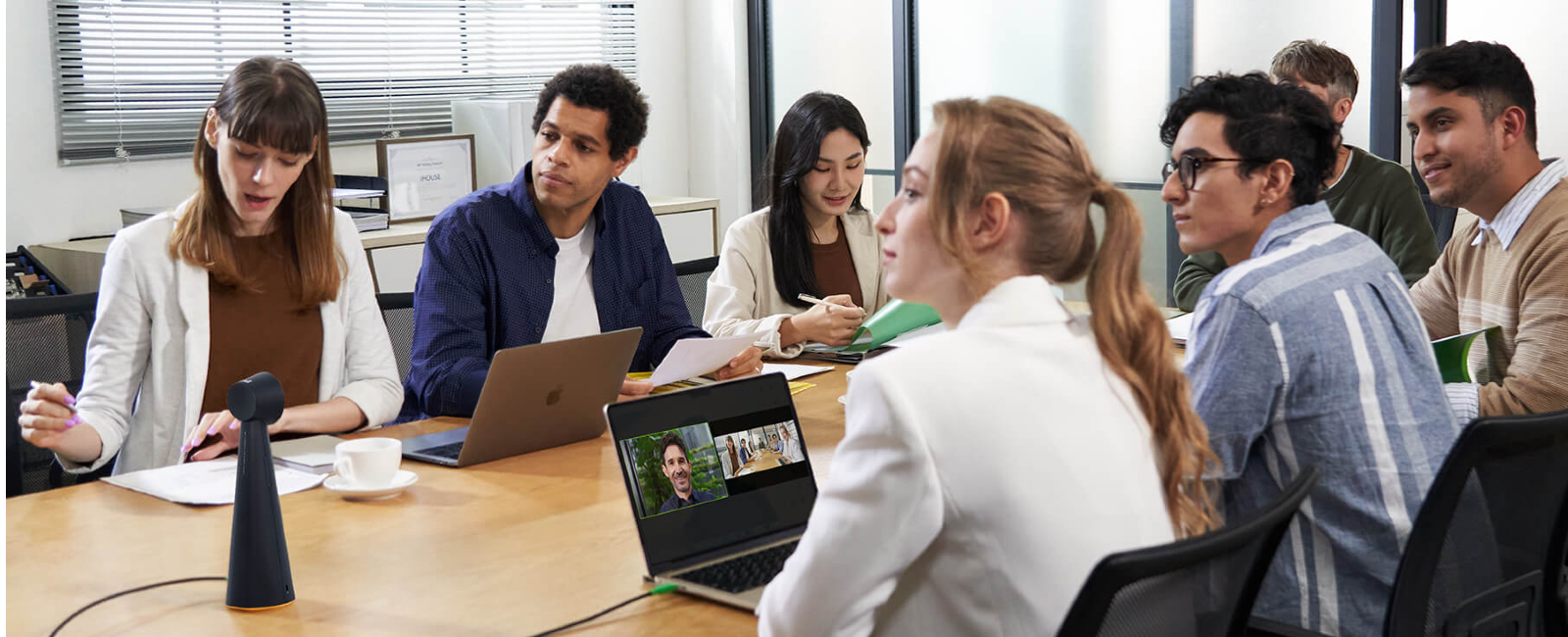 For standard sized meeting rooms or up to 8 people. Place TOTEM 180 at the head of the table, on the side where the conference screen is located.
